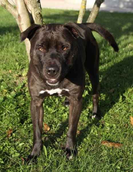 Stafford-Mix ist ein netter und ausgeglichener Rüde. Nanuk besucht bei